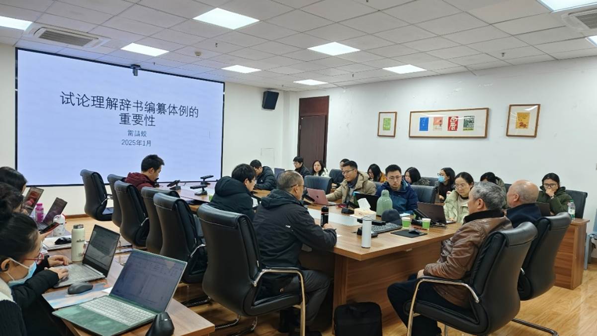 扫码关注公众号2025年1月7日,遵义师范学院雷昌蛟教授在四川大学江安校区文科楼311会议室以《试谈理解辞书编纂体例的重要性》为题,与学院师生展开交流座谈。座谈会由四川大学文学与新闻学院教授、《汉语大字典》修订工程执行负责人雷汉卿教授主持,顾满林教授、王长林副教授、滕胜霖老师、侯俊老师、侯建科老师、李洁琼老师以及修订团队20余名硕博士生、本科生参加了此次座谈。