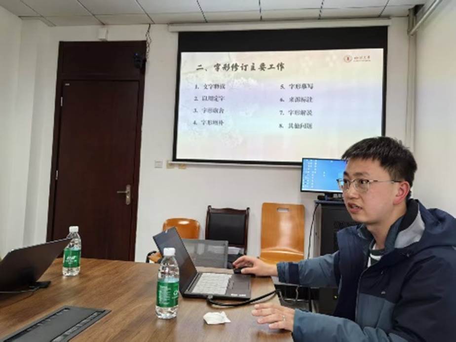 扫码关注公众号2025年3月29日,《汉语大字典》修订课题组召开古文字修订专题例会。滕胜霖老师介绍了课题组过去两年的修订进度和本年度的基本规划。